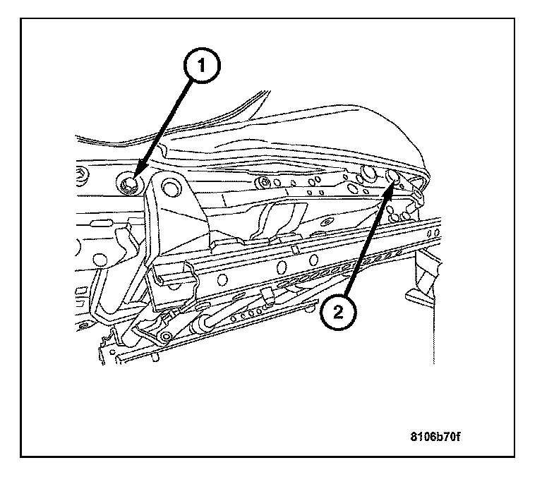 3. Install the power seat track front inboard and outboard attachment bolts (2).