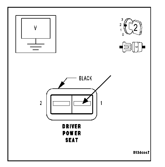 1. MEASURE DRIVER POWER SEAT SWITCH FUSED B(+) CIRCUIT VOLTAGE