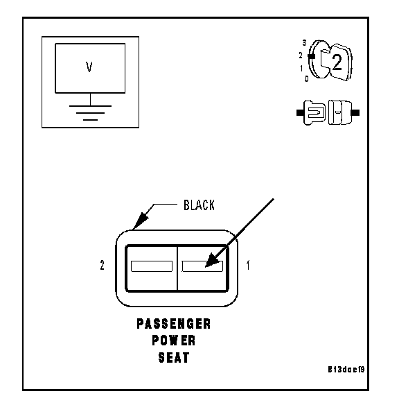1. MEASURE PASSENGER POWER SEAT SWITCH FUSED B(+) CIRCUIT VOLTAGE