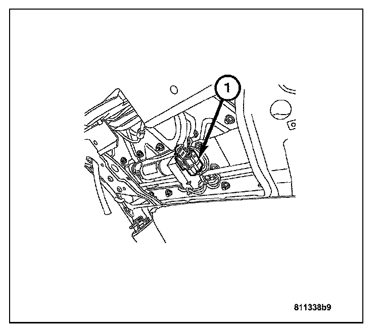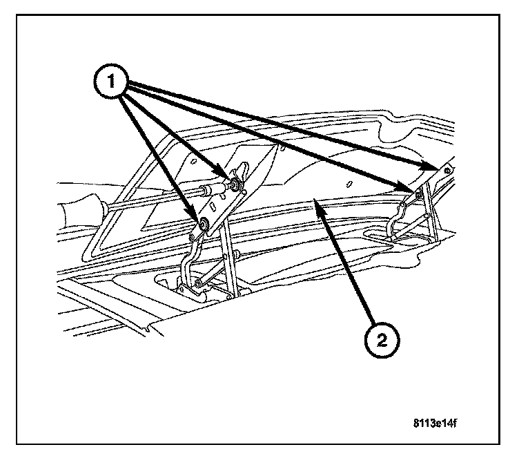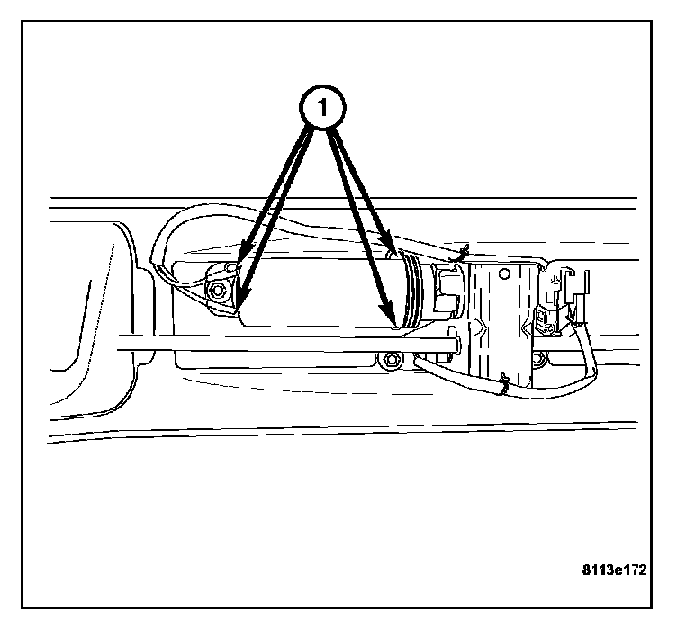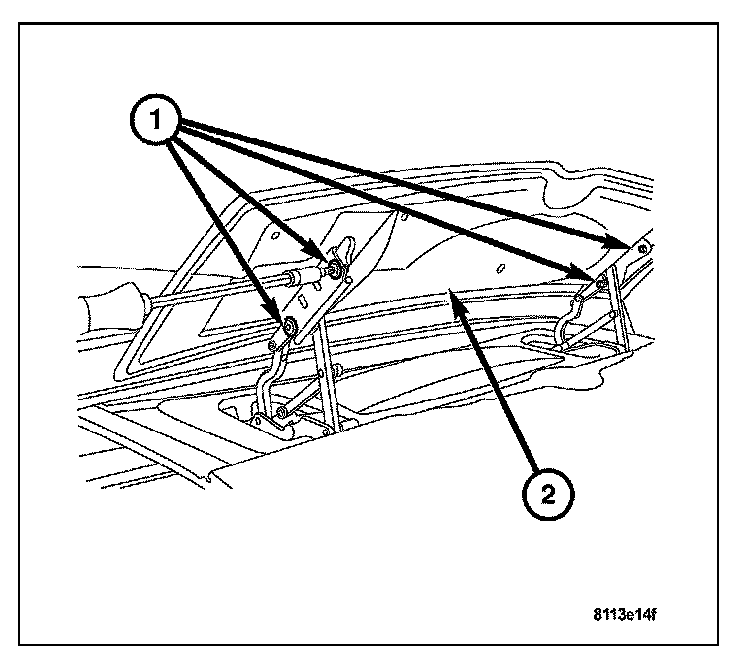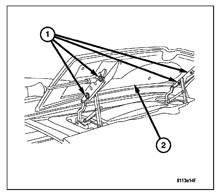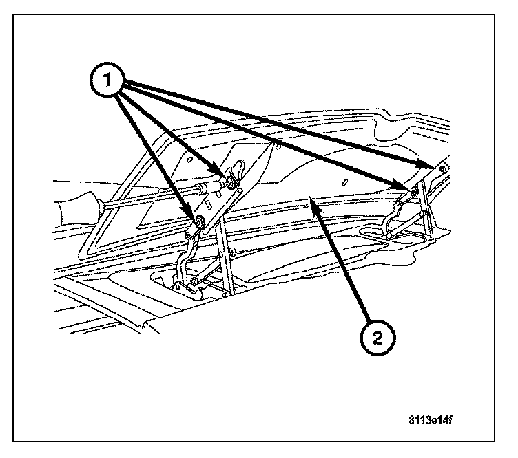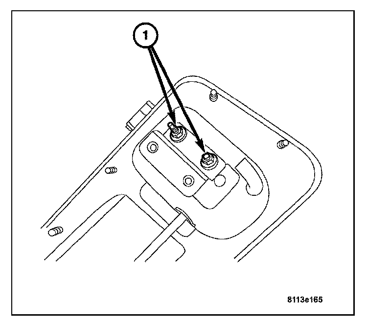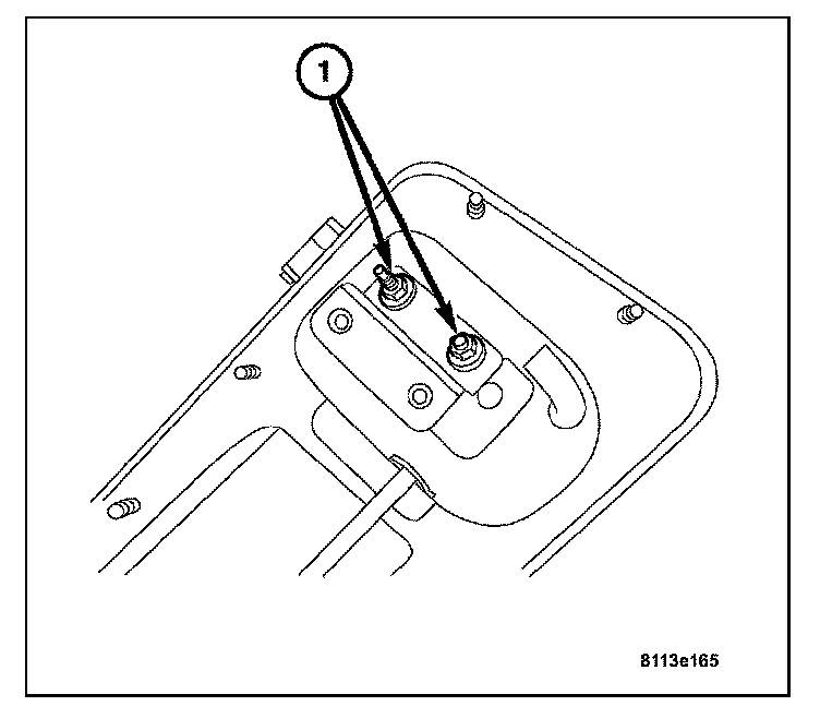 4. Install the two mounting nuts (2) attaching the mounting plate to the rear liftgate. Tighten to 2.5 N.m (19 in.lbs.).