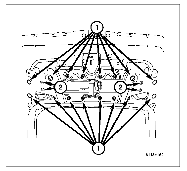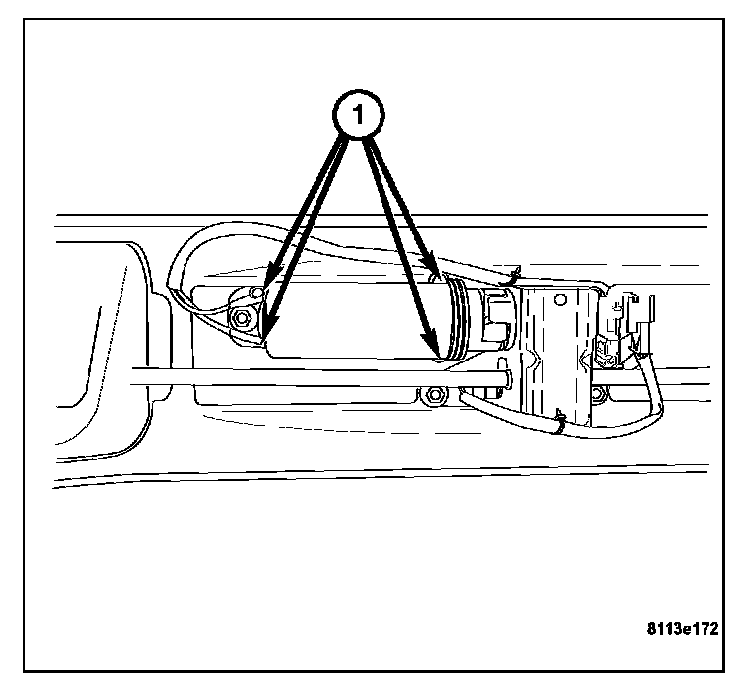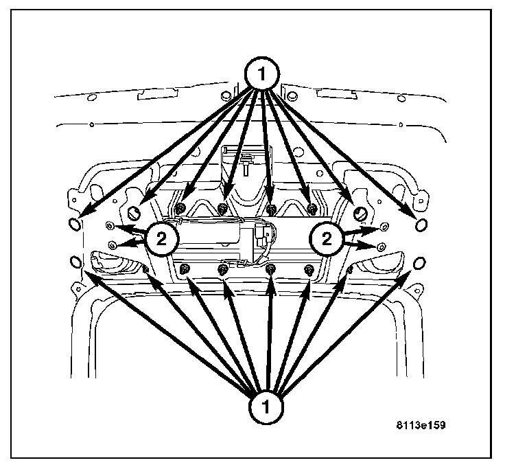 3. Install the sixteen mounting nuts (1) attaching the mounting plate to the rear liftgate. Tighten to 2.5 N.m (19 in.lbs.).