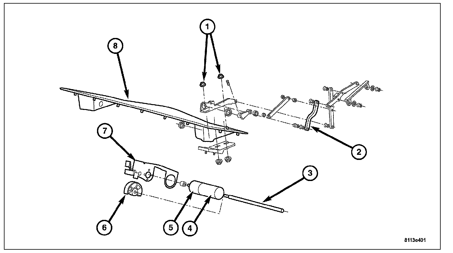 1. Remove the spoiler wing (2) from the linkage.