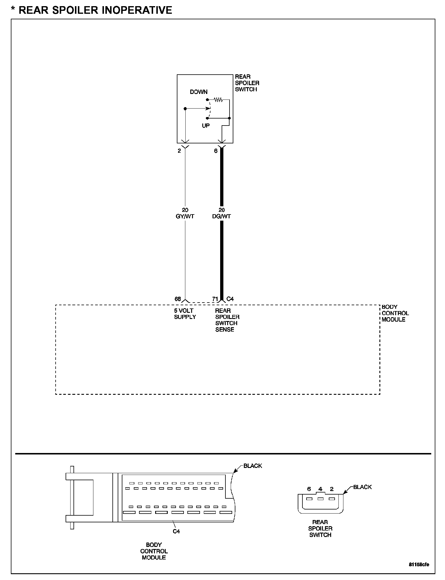 NO: Repair the Rear Spoiler Switch Ground circuit for an open.