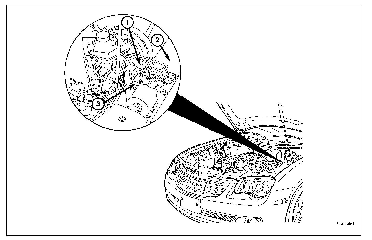 The CAB is a microprocessor-based device which monitors the Antilock Brake System (ABS) during normal braking and controls it when the vehicle is in an ABS stop. The CAB is mounted to the Hydraulic Control Unit (HCU) (3) as part of the Integrated Control Unit (ICU). The CAB uses a 47-way electrical connector on the vehicle wiring harness.