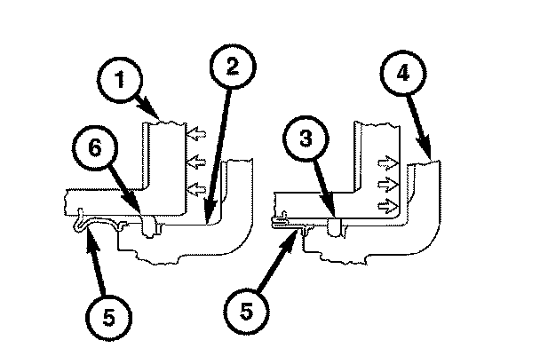 The caliper piston seals (5) control the amount of piston (1) extension needed to compensate for normal lining wear.