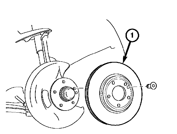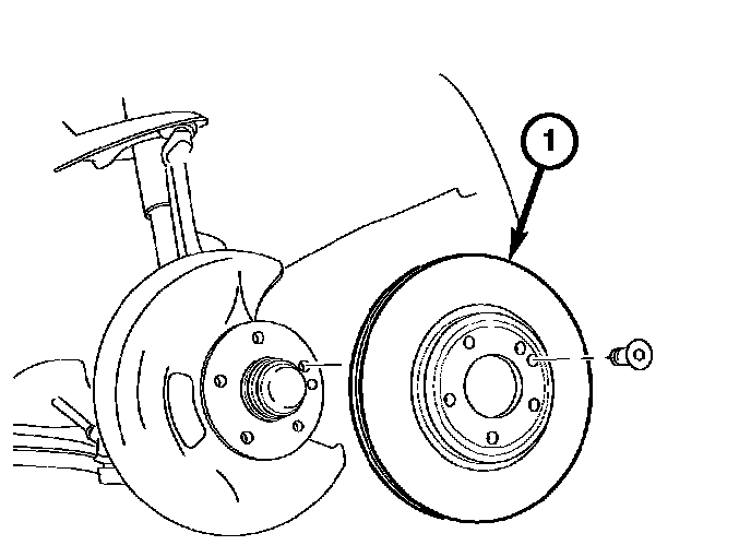 5. Remove the retaining bolt and then remove the brake rotor (1) from the wheel hub.