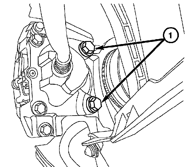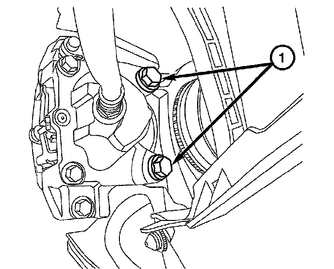 3. Remove the caliper mounting bolts (1) and remove the caliper from the knuckle.