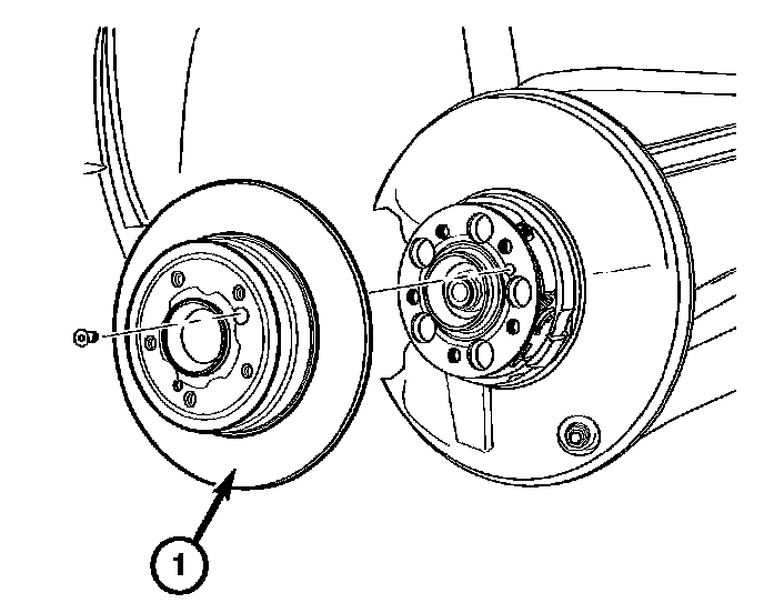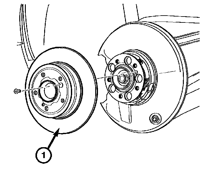 4. Remove the rotor retaining bolt and remove the rotor (1) from the wheel hub.