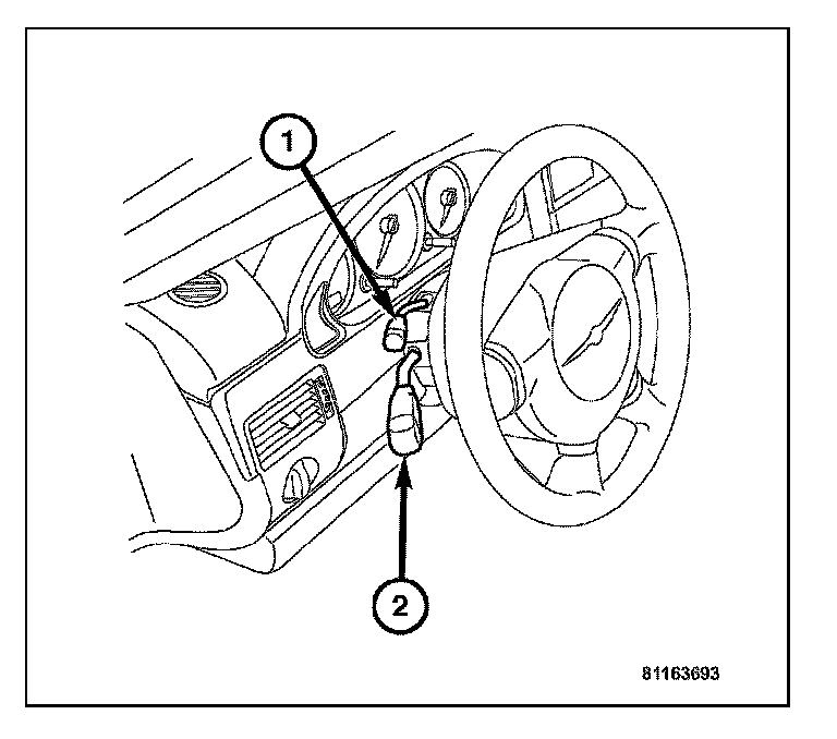 The Speed Control System is fully electronically controlled by the Powertrain Control Module (PCM). Control of the Speed Control System is accomplished by a Speed Control Switch (1) which is located just above the Multifunction Switch (2). The Speed Control System also uses other components of the vehicle to accomplish its tasks. The five other major components used are as follows; The PCM, Accelerator Pedal Position Sensor, Kickdown Switch (Automatic Transmission), Throttle Body and the Clutch Pedal Position Switch (Manual Transmission). The Speed Control System is designed to operate at speeds above 25 MPH (40 km/h).