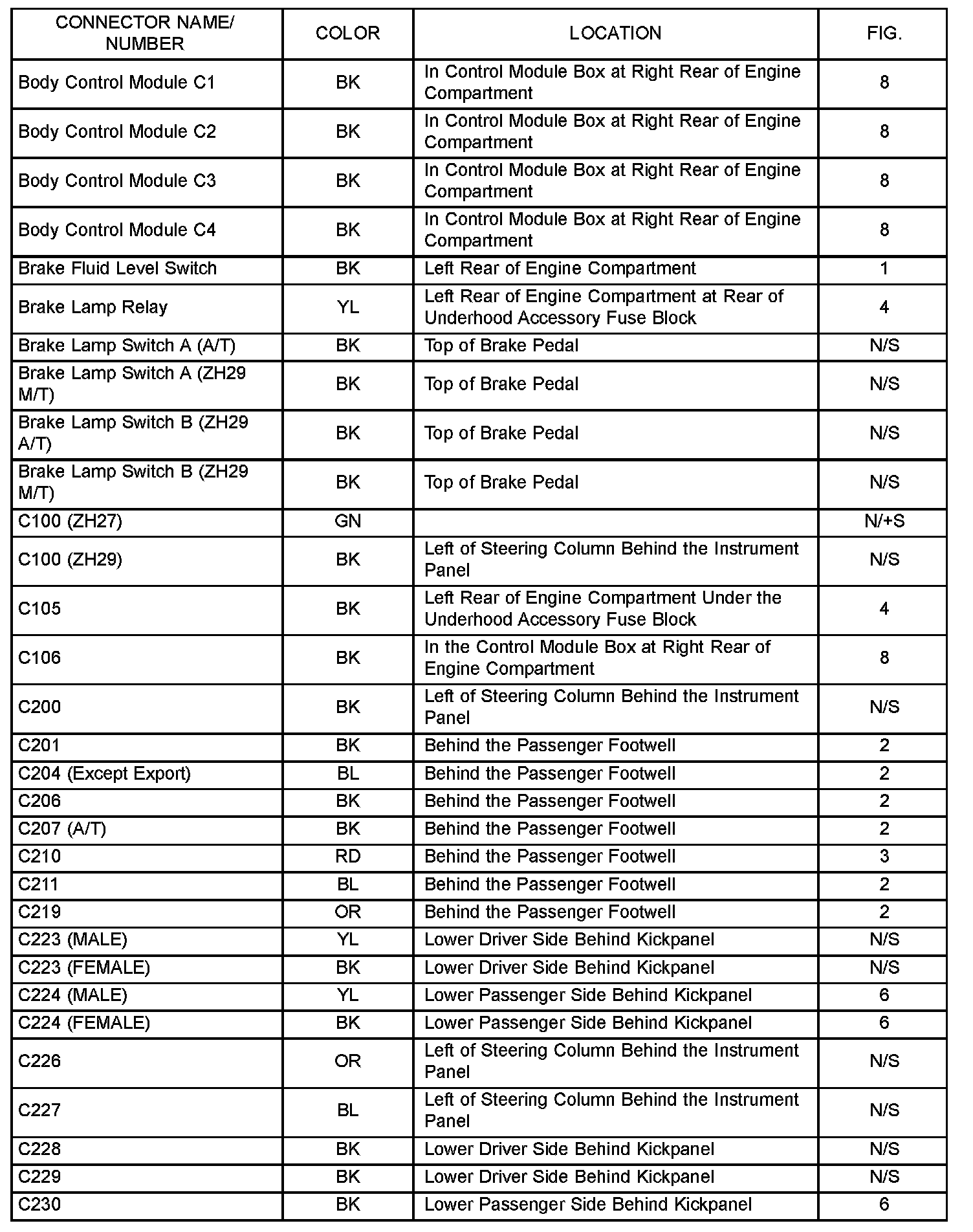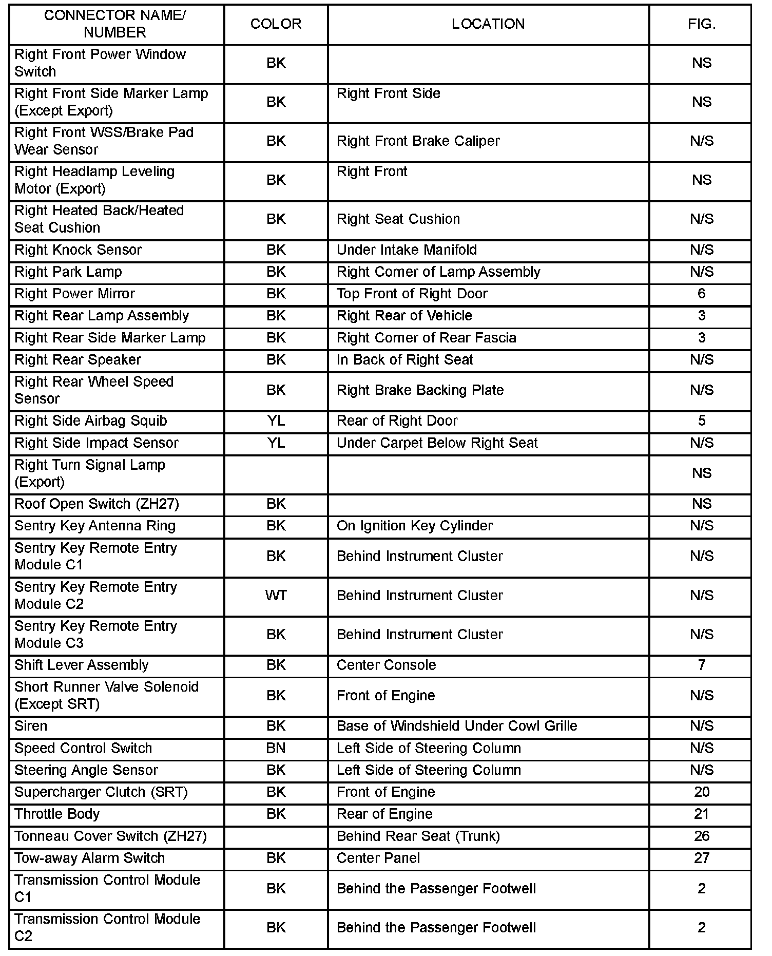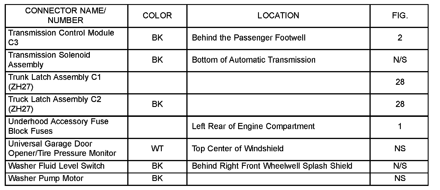 If a link on the index chart to a figure is not provided, that means that the connector and/or figure in question does NOT apply to the vehicle model selected.