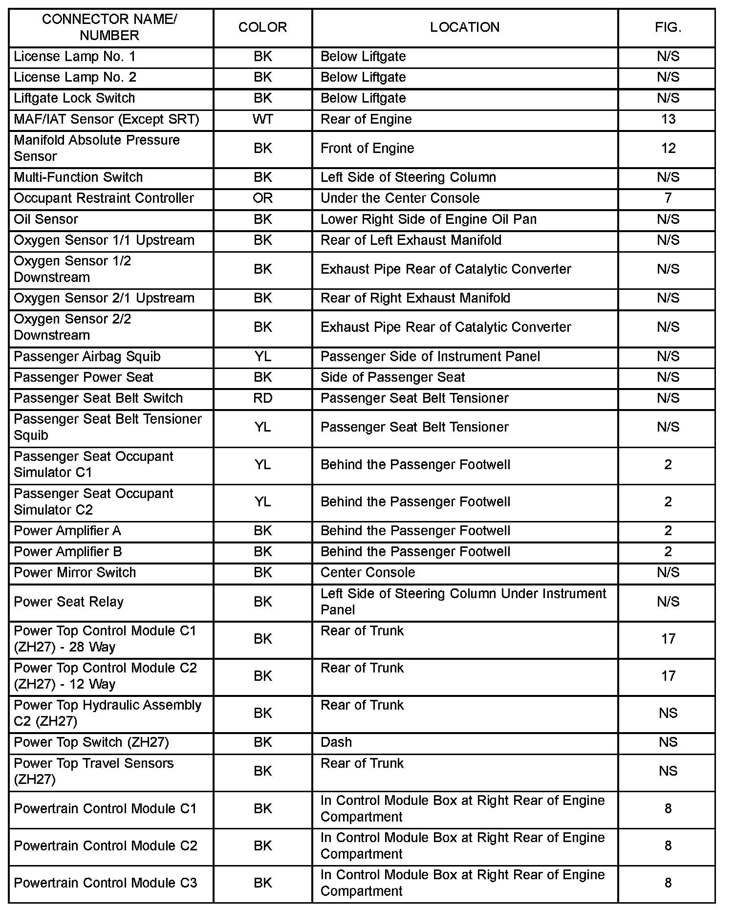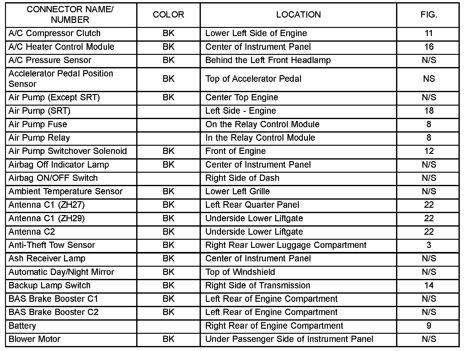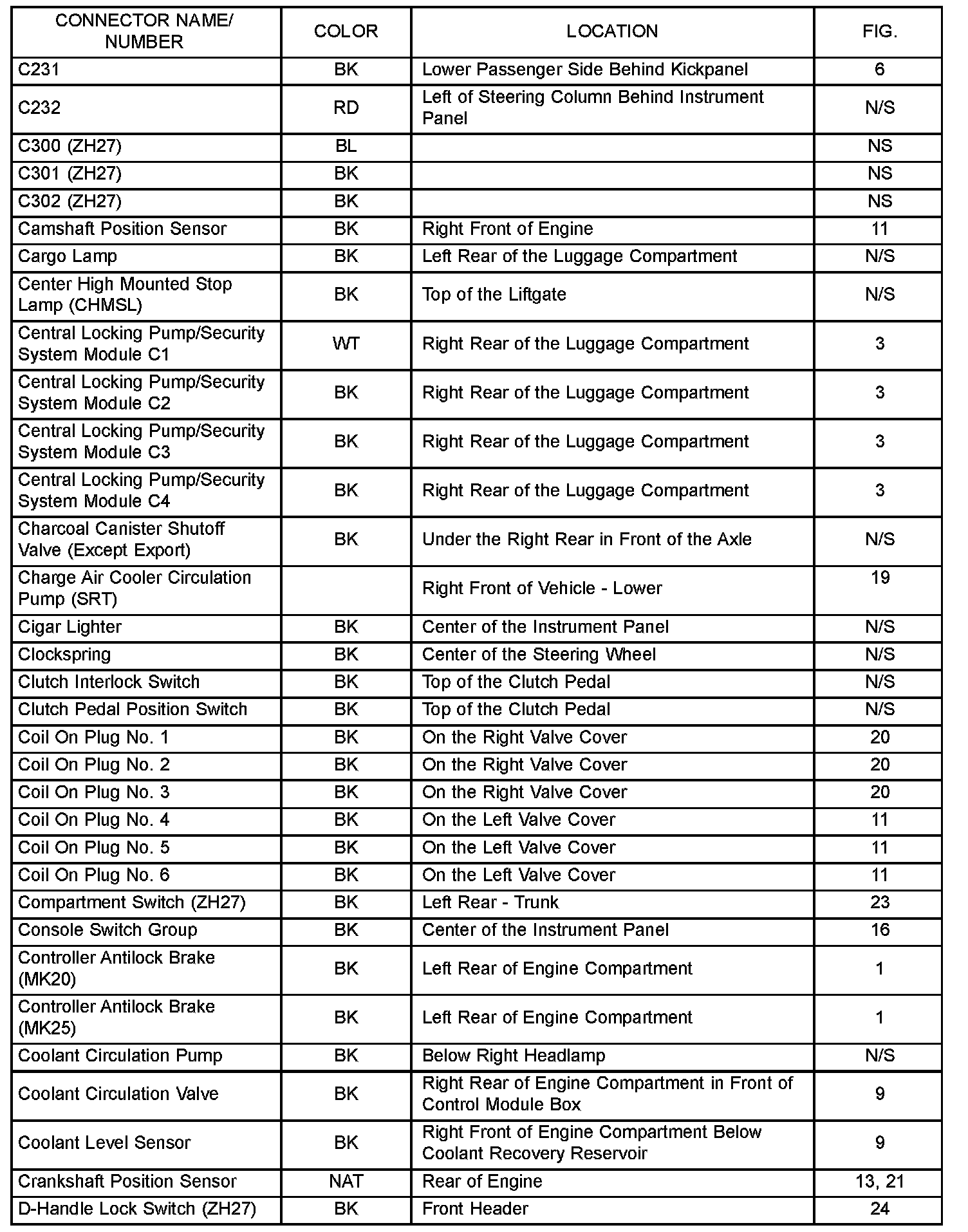 If a link on the index chart to a figure is not provided, that means that the connector and/or figure in question does NOT apply to the vehicle model selected.