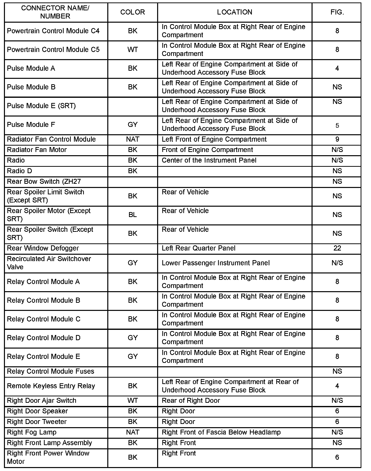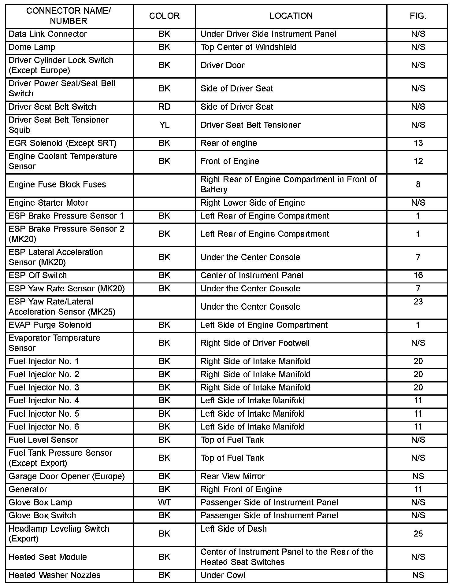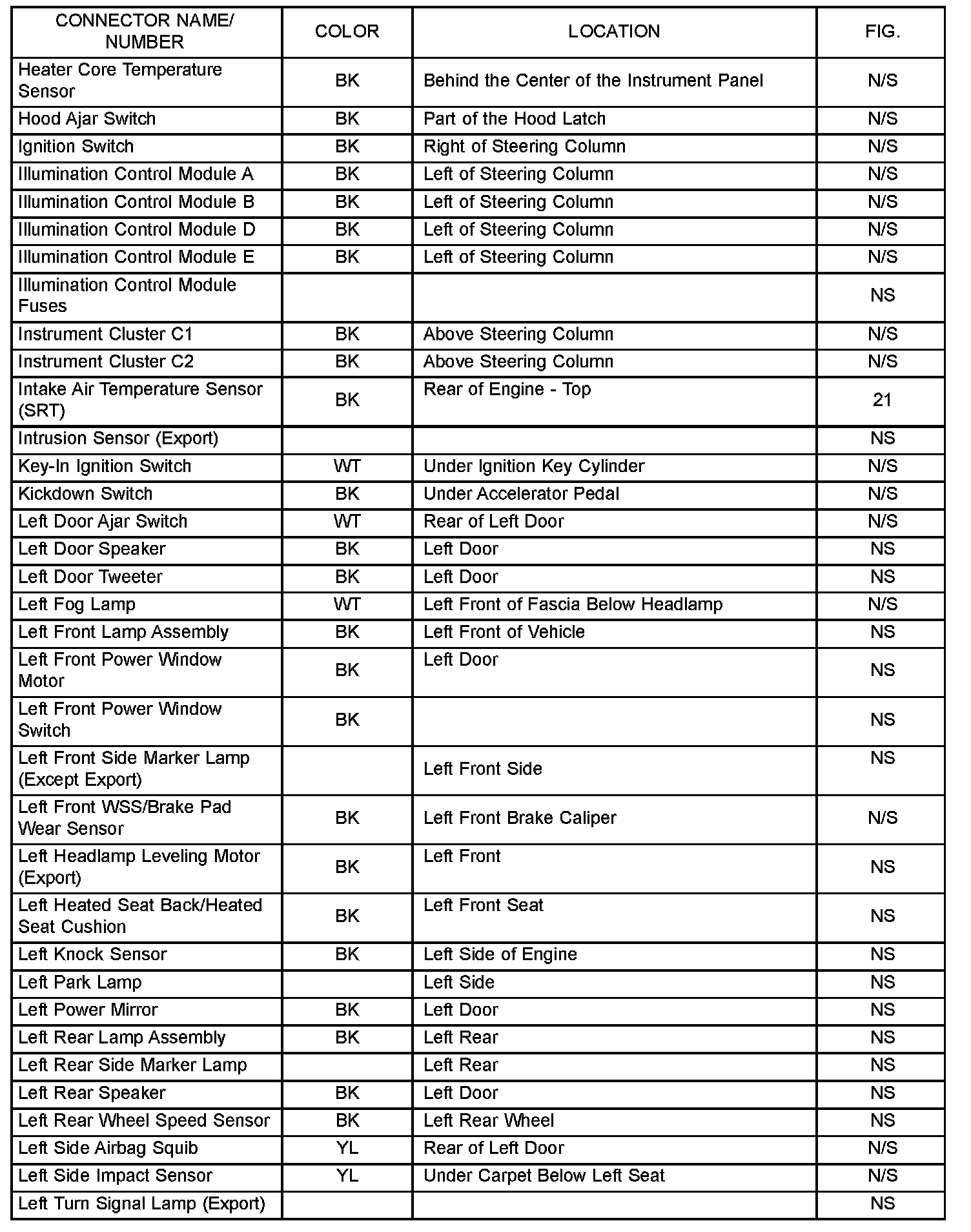 The abbreviation N/S means Not Shown in the illustrations.
