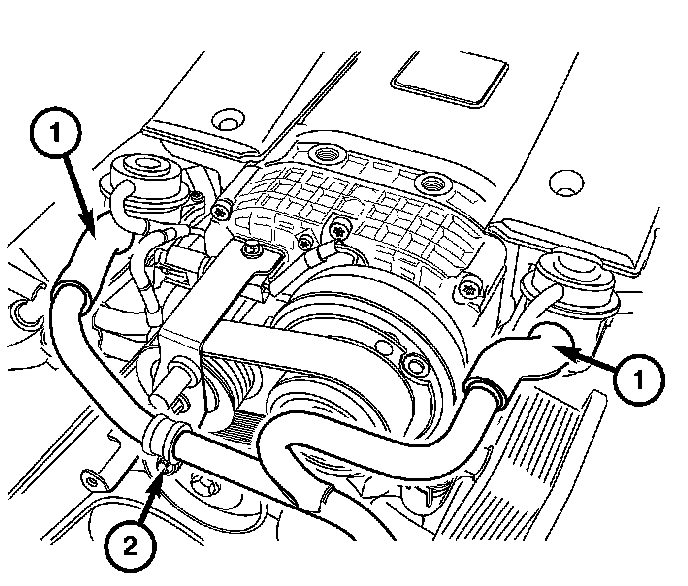 4. Remove the air pump tube retaining bolts (2).