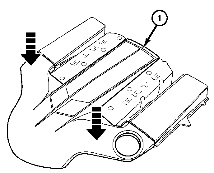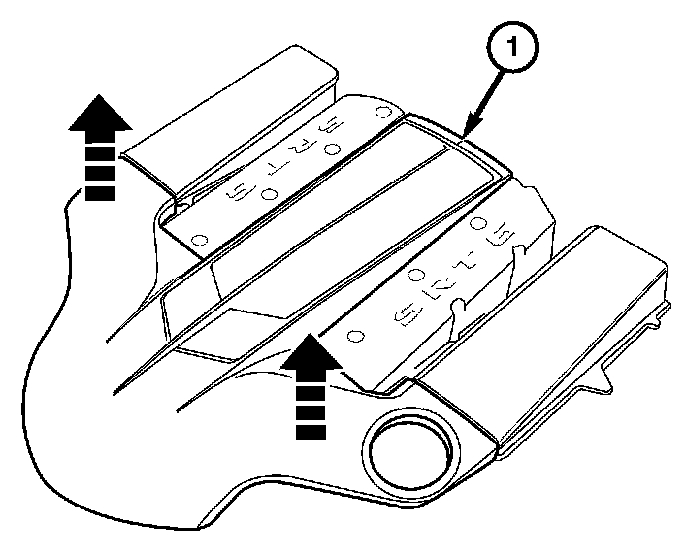 REMOVAL - ENGINE COVER (SRT)1. Firmly grasp both of the front corners of the front engine cover (1) and pull up firmly.