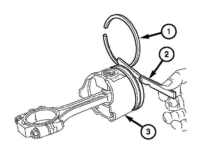 1. Measure the end gap (1) with rings at the bottom of the cylinder.
