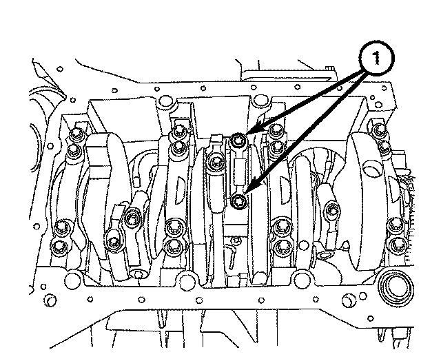 4. Remove the connecting rod bolts (1) and the connecting rod caps.