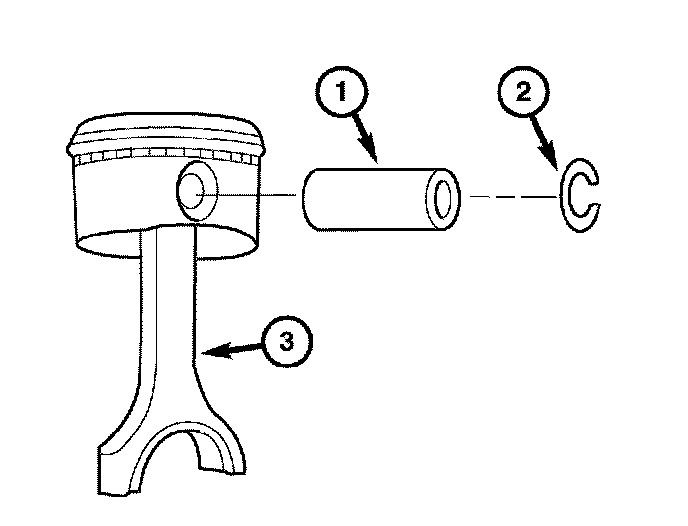 5. Load the piston/connecting rod assembly (1) into a ring compressor (2) with light oil lubrication.