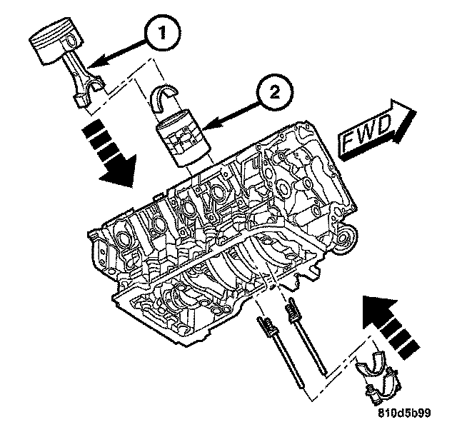 2. Mark the connecting rods and rod caps (1) for reassembly.