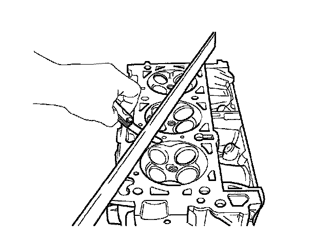 4. The cylinder head must be flat within: Standard dimension = less than 0.002 inch. (0.05 mm) Service Limit = 0.008 inch. (0.2 mm) Grinding Limit = Maximum of 0.008 inch. (0.2 mm) is permitted.