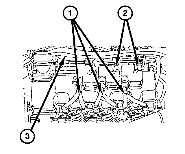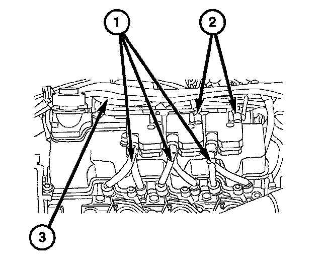 4. Position aside the vacuum hoses at the cylinder head cover retainers (3).