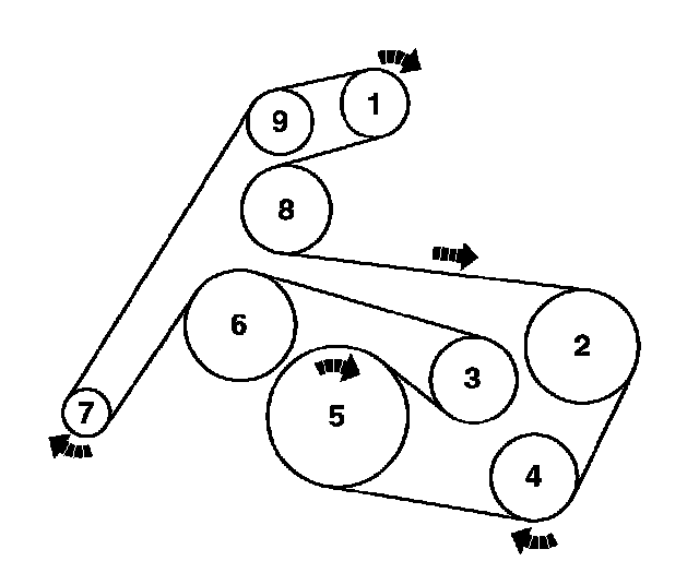 A single, serpentine style belt drives all of the engine accessories. The accessory drive includes an automatic tensioner, making adjustments unnecessary for the life of the belt.