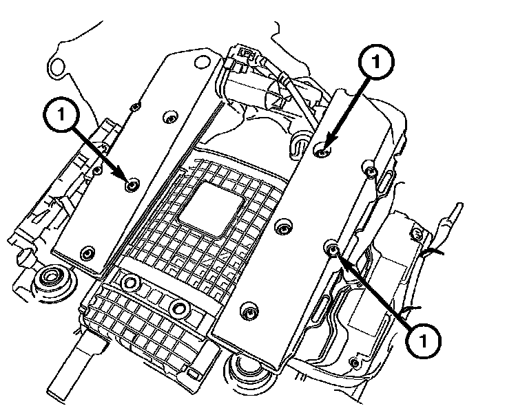 7. Install the left hand intake plenum by installing the retainer bolts (1).