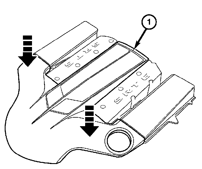 11. Install the engine cover (1) by aligning the engine cover retaining clips to the mounting brackets. Then push down firmly to connect the engine cover to the mounting brackets.
