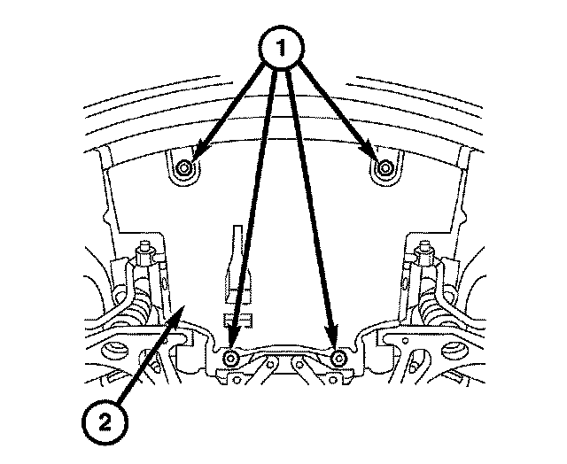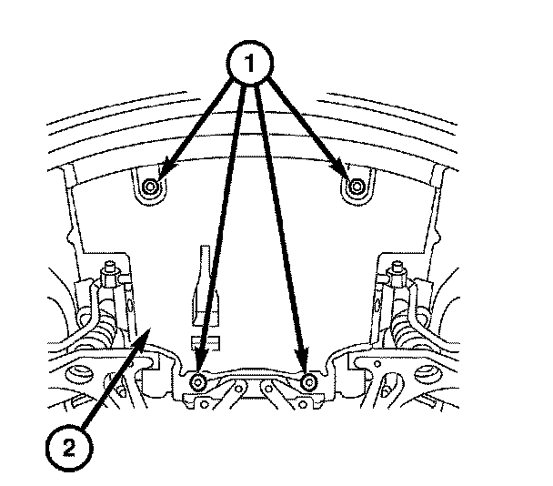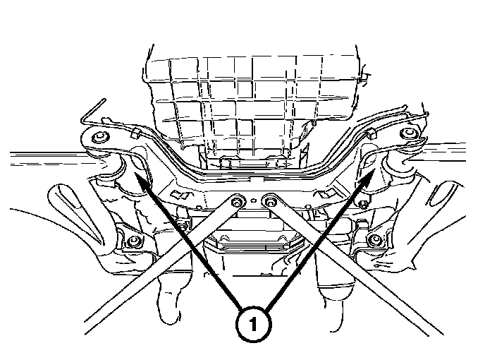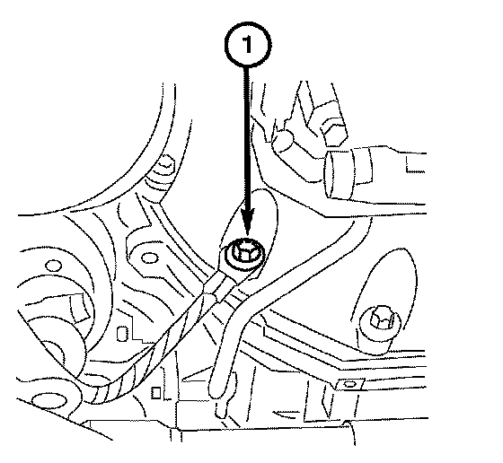 3. Lower the engine into the engine compartment and install the front engine mount bolts (1). Tighten bolts to 55 Nm (41 ft. lbs.).