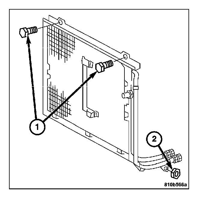 3. Install the refrigerant lines (1) to the condenser. Tighten to 24 Nm (18 ft. lbs.).