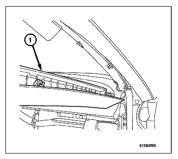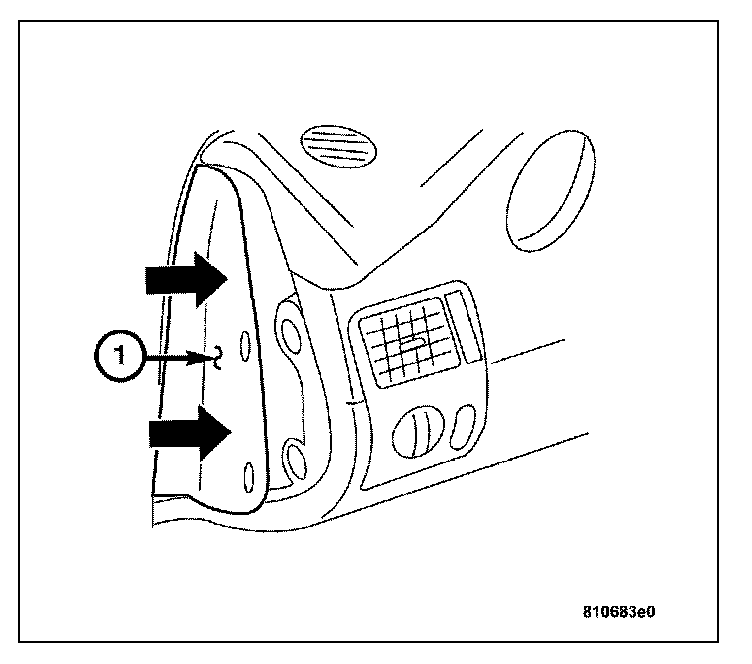 10. Lift the top section (1) of the instrument panel and remove toward rear.