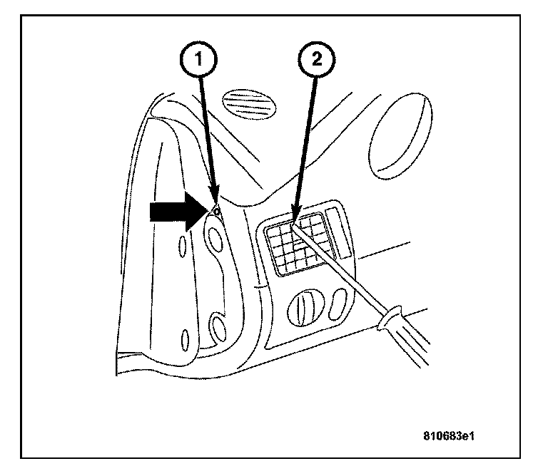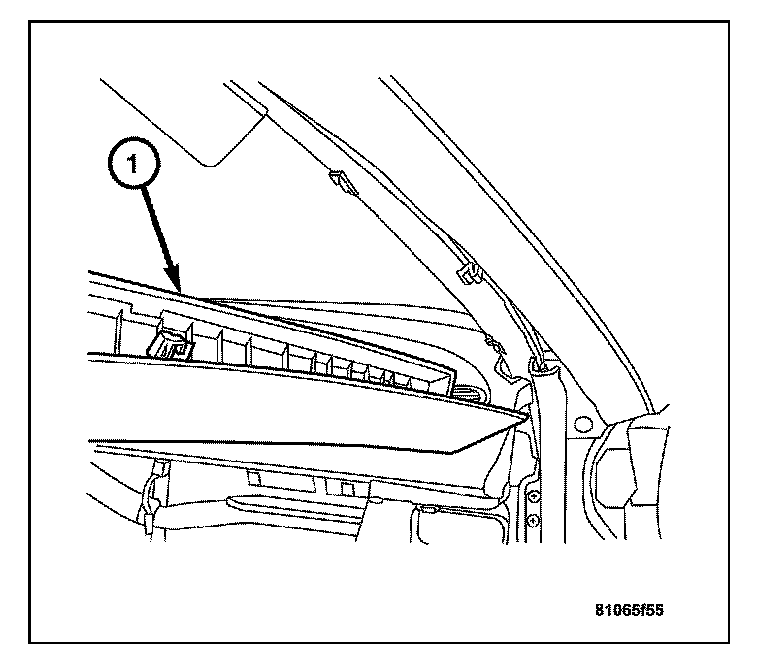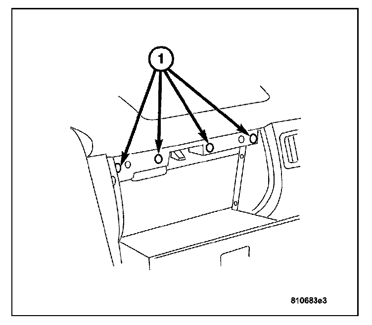 7. Open the glove compartment and remove the screws (1) attaching it to the top section of the instrument panel.