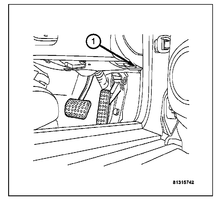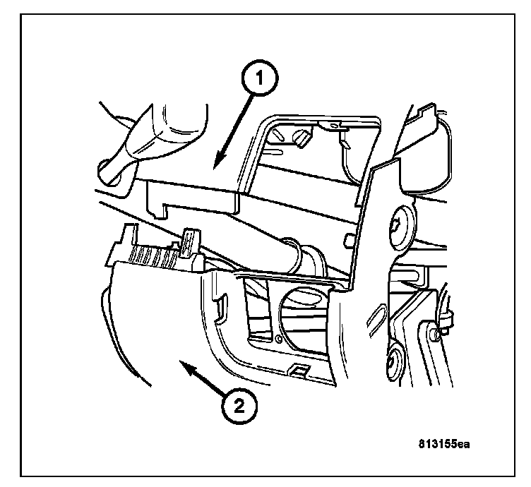 8. Install the steering column panel then install the screw (5) attaching the steering column panel under the steering column.
