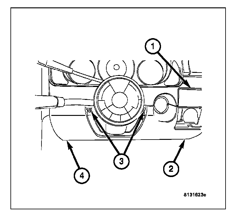 4. Install the screw (2) attaching the lower I/P panel to the cluster bezel.