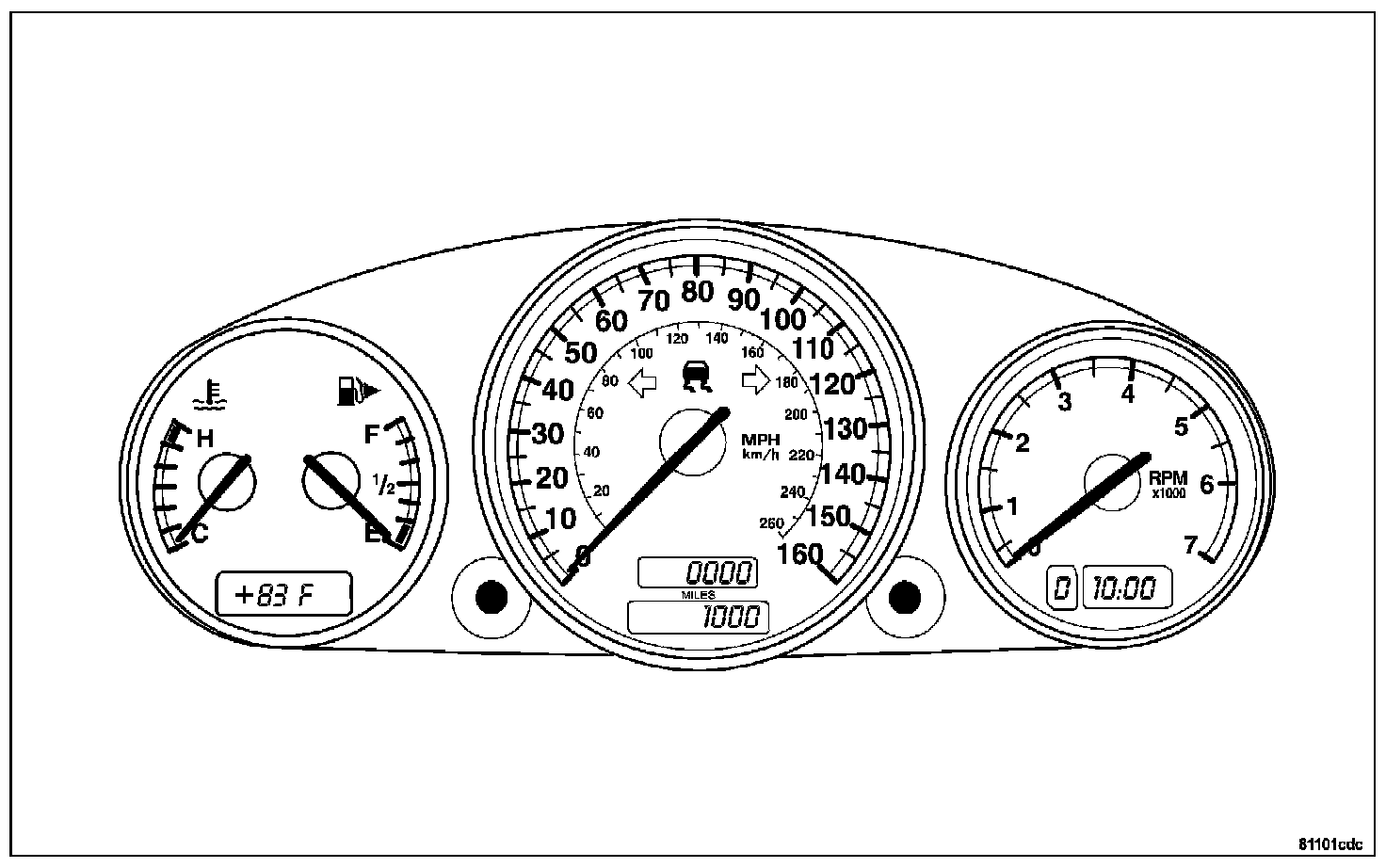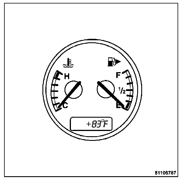 The coolant temperature gauge and the fuel level gauge must indicate according to operating conditions seen with the DRBIII(R).