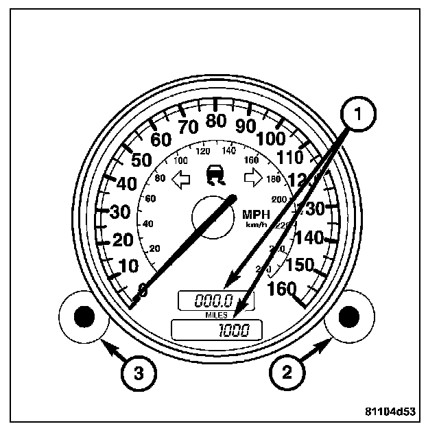 4. Press the reset button (3) for the trip odometer (1) and hold.