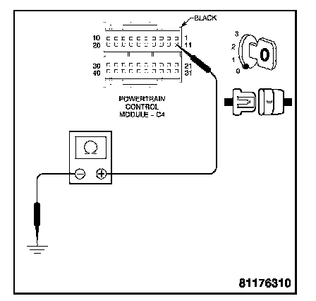 Measure the resistance of the PCM CAN C Bus termination by back probing the CAN C Bus (+) circuit to the CAN C Bus (-) circuit at the PCM C4 harness connector.