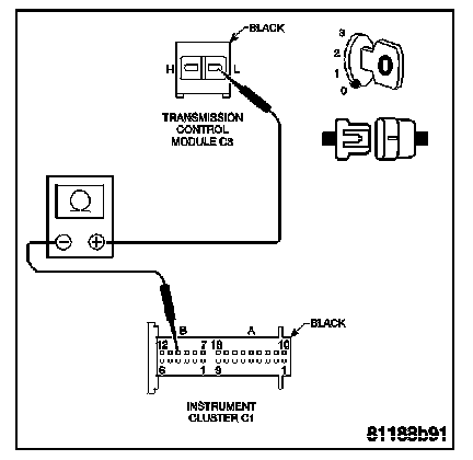 NOTE: Check connectors � Clean/repair as necessary. Measure the resistance of the CAN C Bus (-) circuit from the TCM C3 harness connector to the Instrument Cluster C1 harness connector.