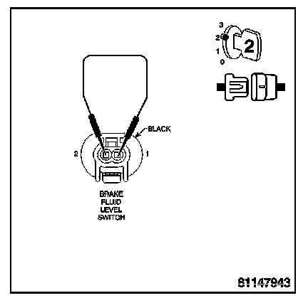Connect a jumper wire between cavity 1 and cavity 2 of the Brake Fluid Level Switch harness connector.