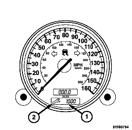 The Flexible Service System (FSS) is a demand-activated engine oil service system. The FSS will illuminate a symbol (2) in the instrument cluster to indicate to the driver when a particular service is due. After a level has dropped below a warning threshold, the remaining distance or the remaining time and the tool symbol (2) are displayed in the panel of the odometer.