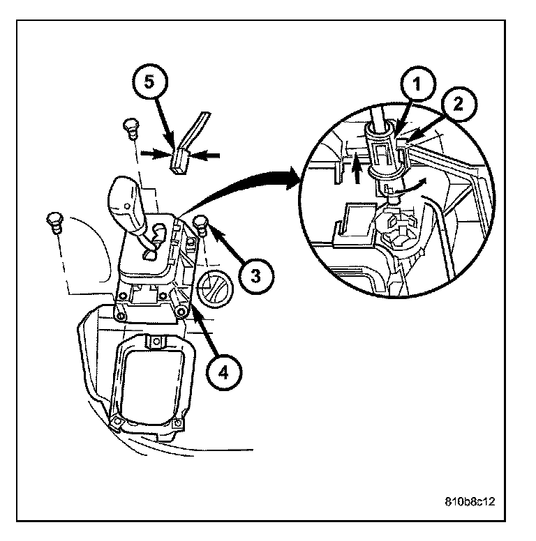 The Backup Lamp Switch for automatic transmission models is an integrated component of the shifter mechanism (4) and cannot be adjusted, or repaired. If faulty, worn or damaged, the entire shifter mechanism assembly must be replaced.