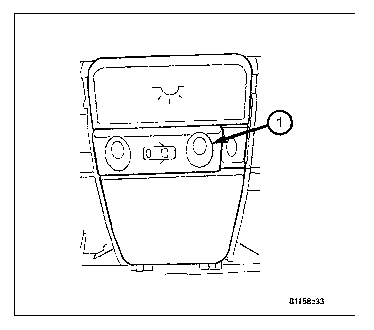 With the courtesy lamp defeat switch in the "O" position (1), the courtesy lamps are prevented from illuminating when the doors are opened. With the courtesy lamp defeat switch in the "-" position, the courtesy lamps illuminate when the doors are opened, then fade to off approximately 8 seconds after the last door is closed (unless the courtesy lamp switch is depressed). If a door remains unclosed, the lamps will remain on for approximately 5 minutes. At this time the Body Control Module will interrupt the ground path to conserve battery power. The courtesy lamp defeat switch is an integrated part of the courtesy lamp unit assembly and cannot be adjusted or repaired. If faulty, worn, or damaged, the entire assembly must be replaced.