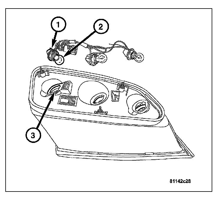 1. Install the bulb (2) into the tail/stop lamp socket (1).