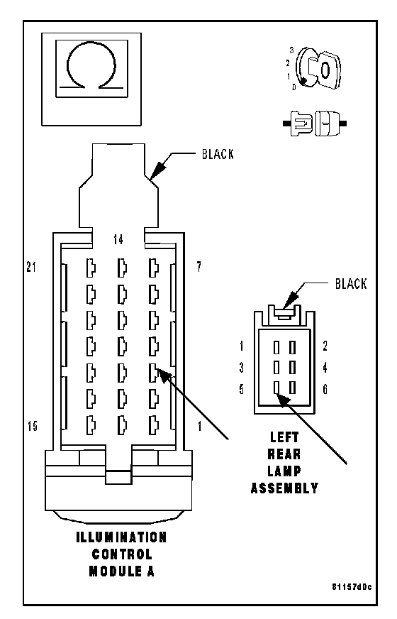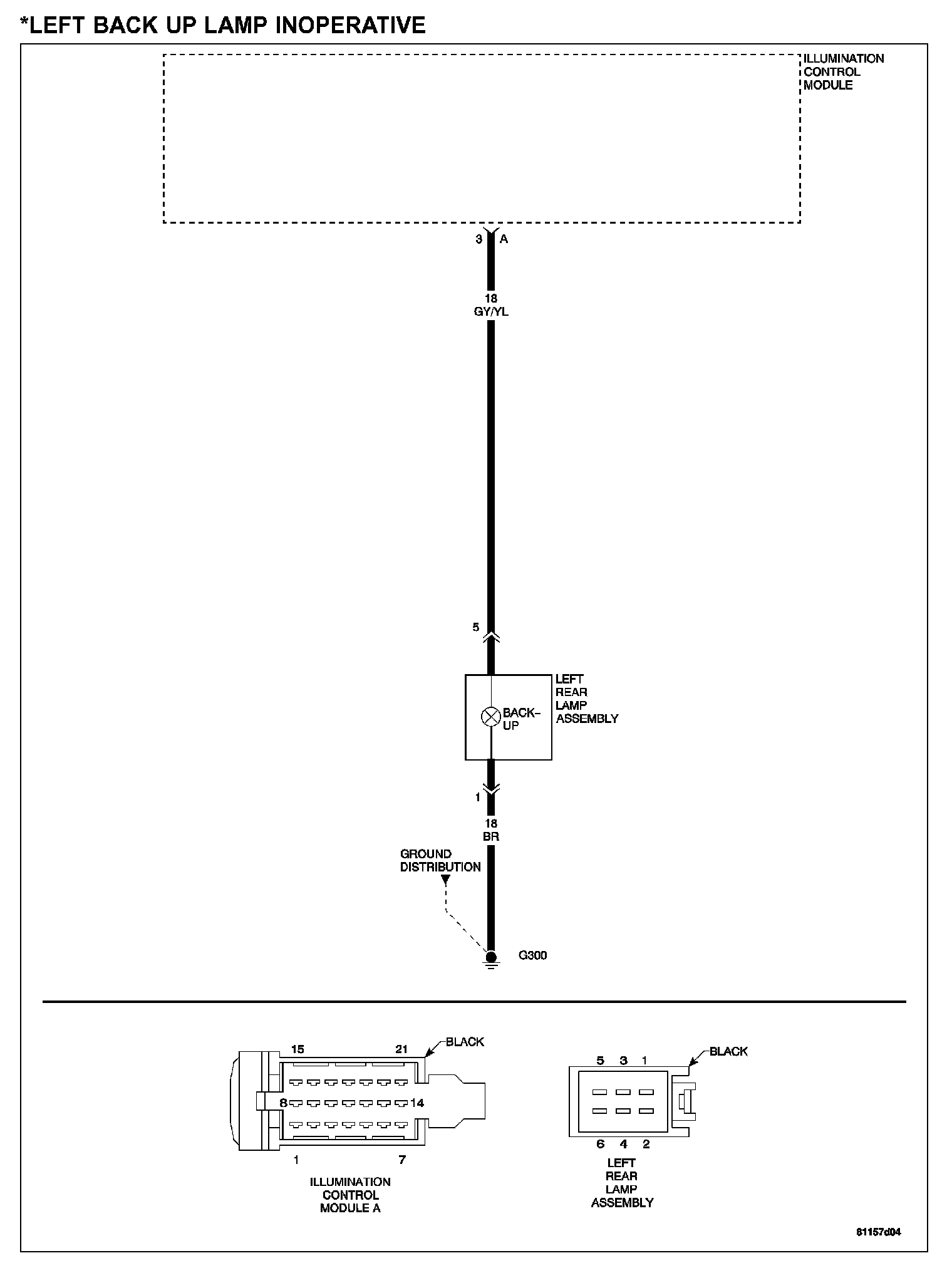 NOTE: If all of the turn signal lamps and both of the back up lamps are inoperative, inspect Fuse 4 located in the Illumination Control Module/IP Fuse Block. If the fuse is open, repair the cause of the open fuse before continuing.