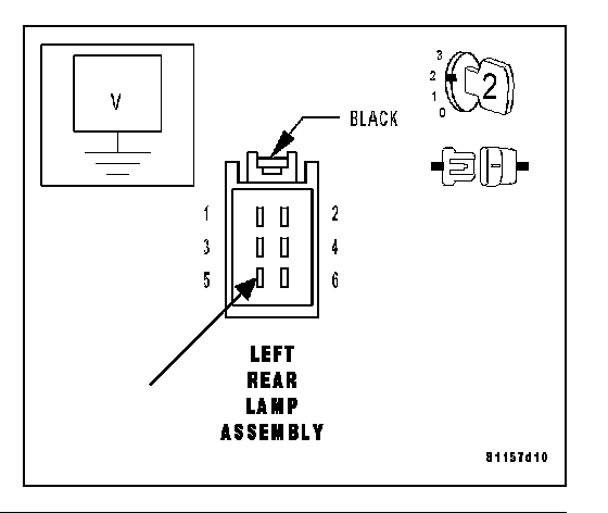 Measure the voltage between the Left Rear Lamp Assembly harness connector cavity 5 and ground.