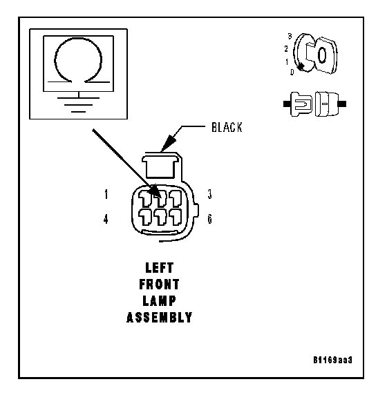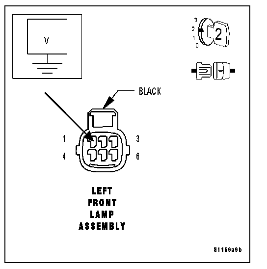 Measure the voltage between the Left Front Lamp Assembly harness connector cavity 1 and ground.