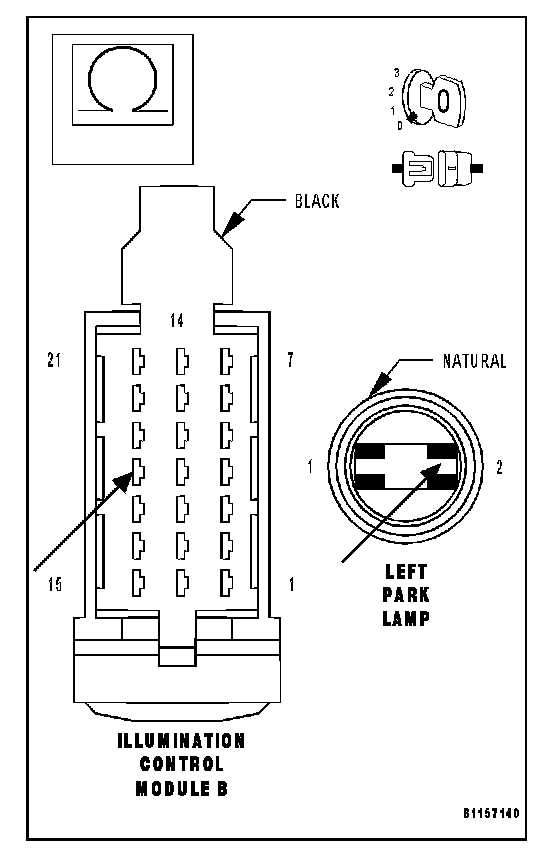 NOTE: If the left front side marker lamp, the left park lamp, the left rear side marker lamp, and the left tail lamp are inoperative, inspect Fuse 10 located in the Illumination Control Module/IP Fuse Block. If the fuse is open, repair the cause of the open fuse before continuing.