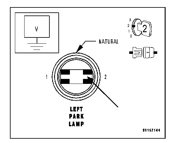 Measure the voltage between the Left Park Lamp harness connector cavity 2 and ground.