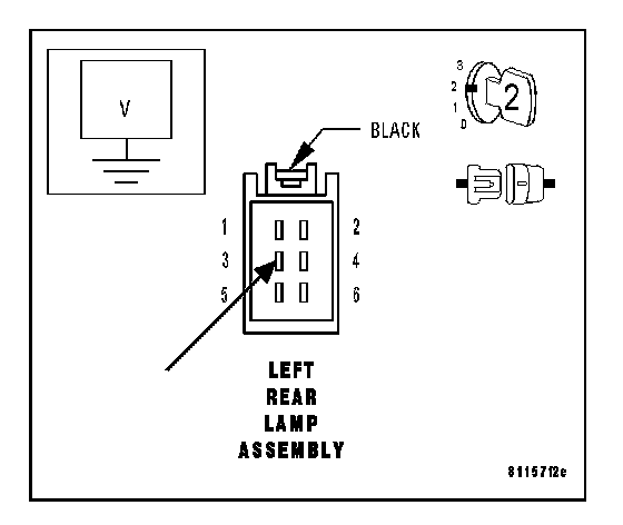 Measure the voltage between the Left Rear Lamp Assembly harness connector cavity 3 and ground.