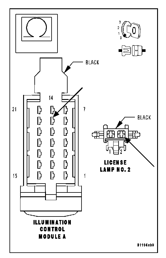NOTE: If both license lamps are inoperative, inspect Fuse 11 located in the Illumination Control Module/IP Fuse Block. If the fuse is open, repair the cause of the open fuse before continuing.