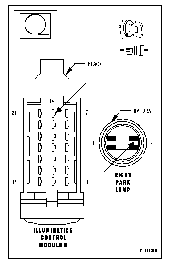 NOTE: If the right front side marker lamp, the right park lamp, the right rear side marker lamp, and the right tail lamp are inoperative, inspect Fuse 7 located in the Illumination Control Module/IP Fuse Block. If the fuse is open, repair the cause of the open fuse before continuing.